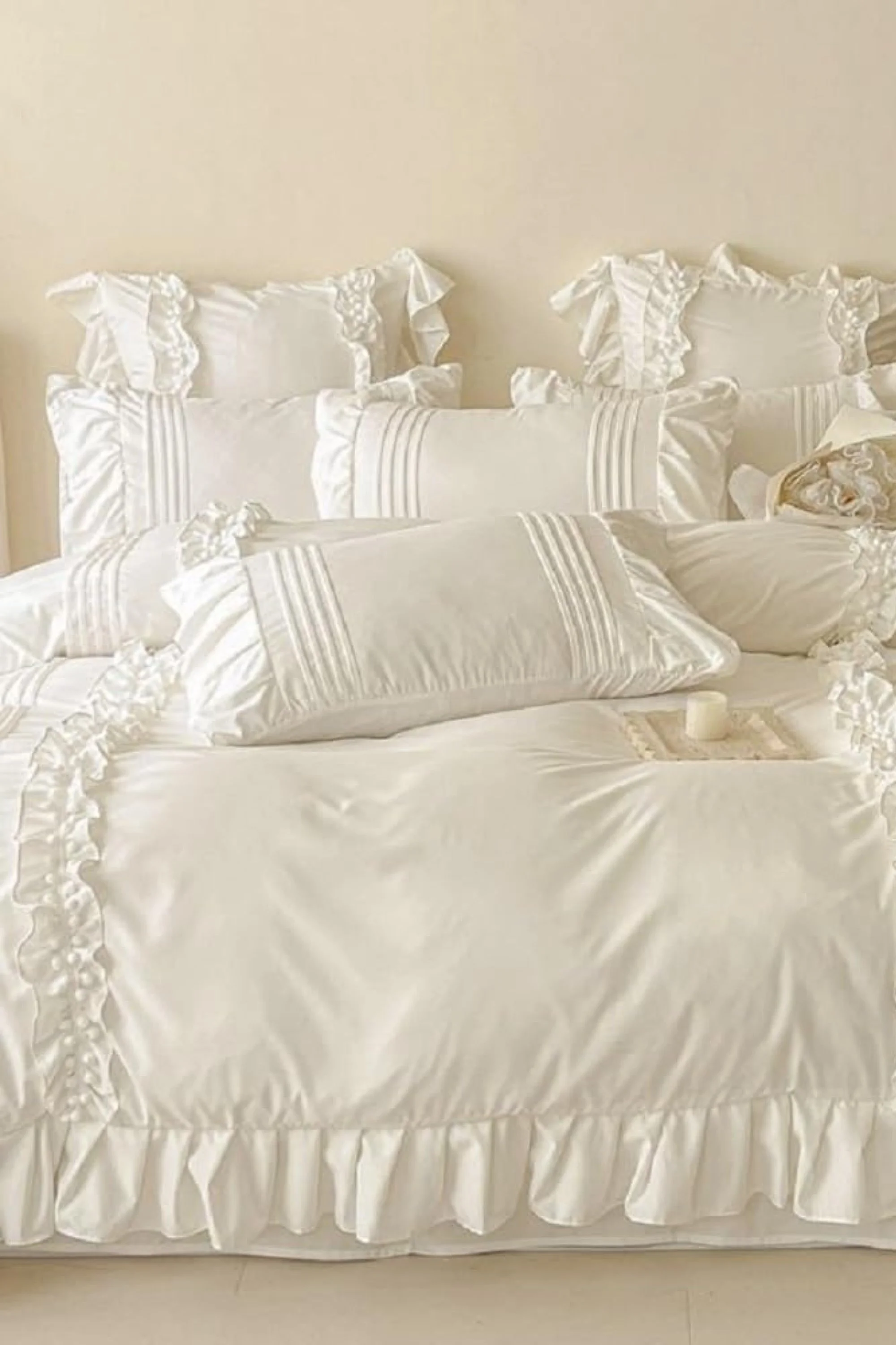 Cette housse de couette à volant apporte immédiatement une touche chic et romantique à la chambre. Avec ses finitions délicates et son linge de lit lumineux, elle est parfaite pour créer une chambre douce et élégante.