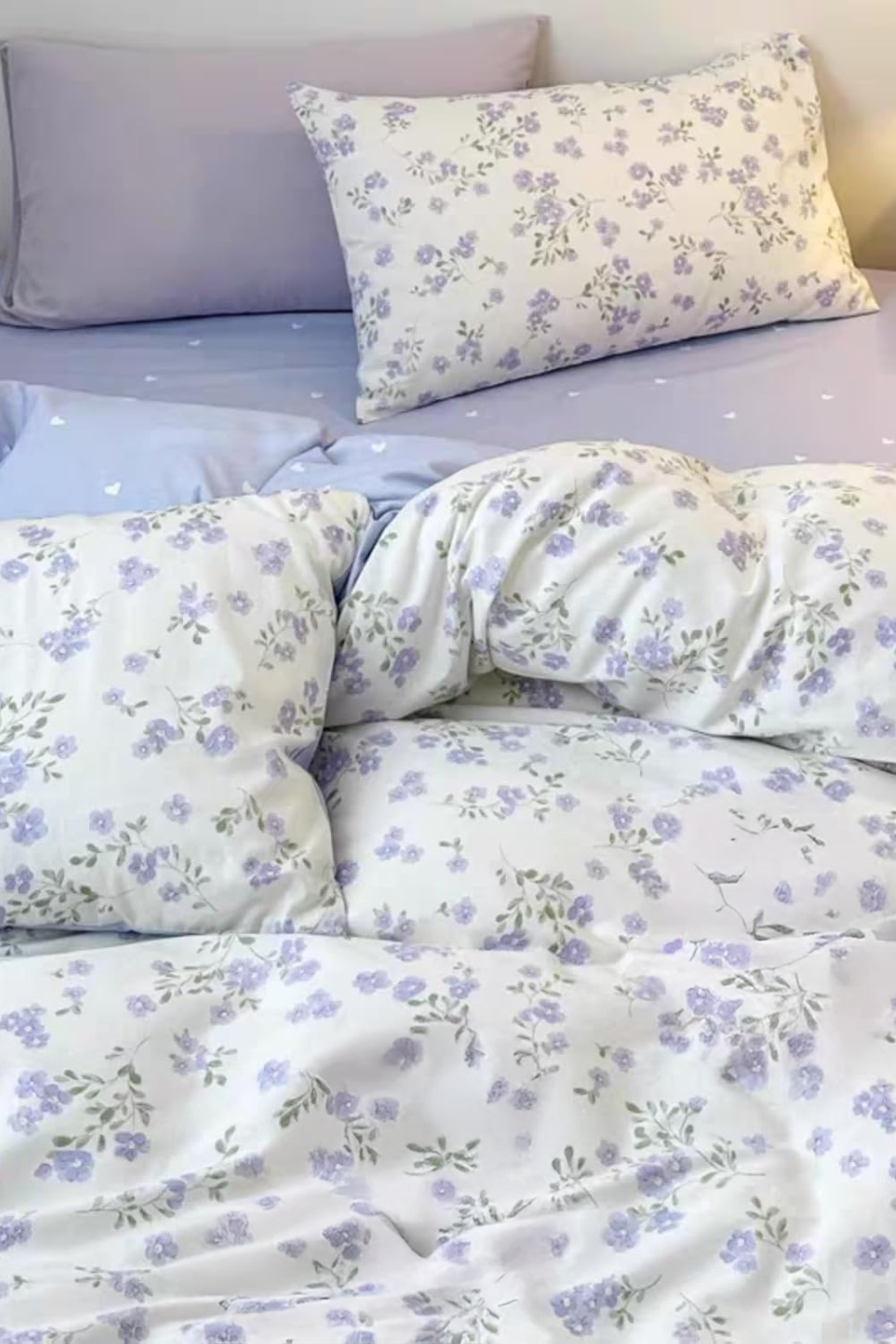 Une parure de lit fleurie lilas, parfaite pour créer une chambre douce, fraîche et instantanément printanière.