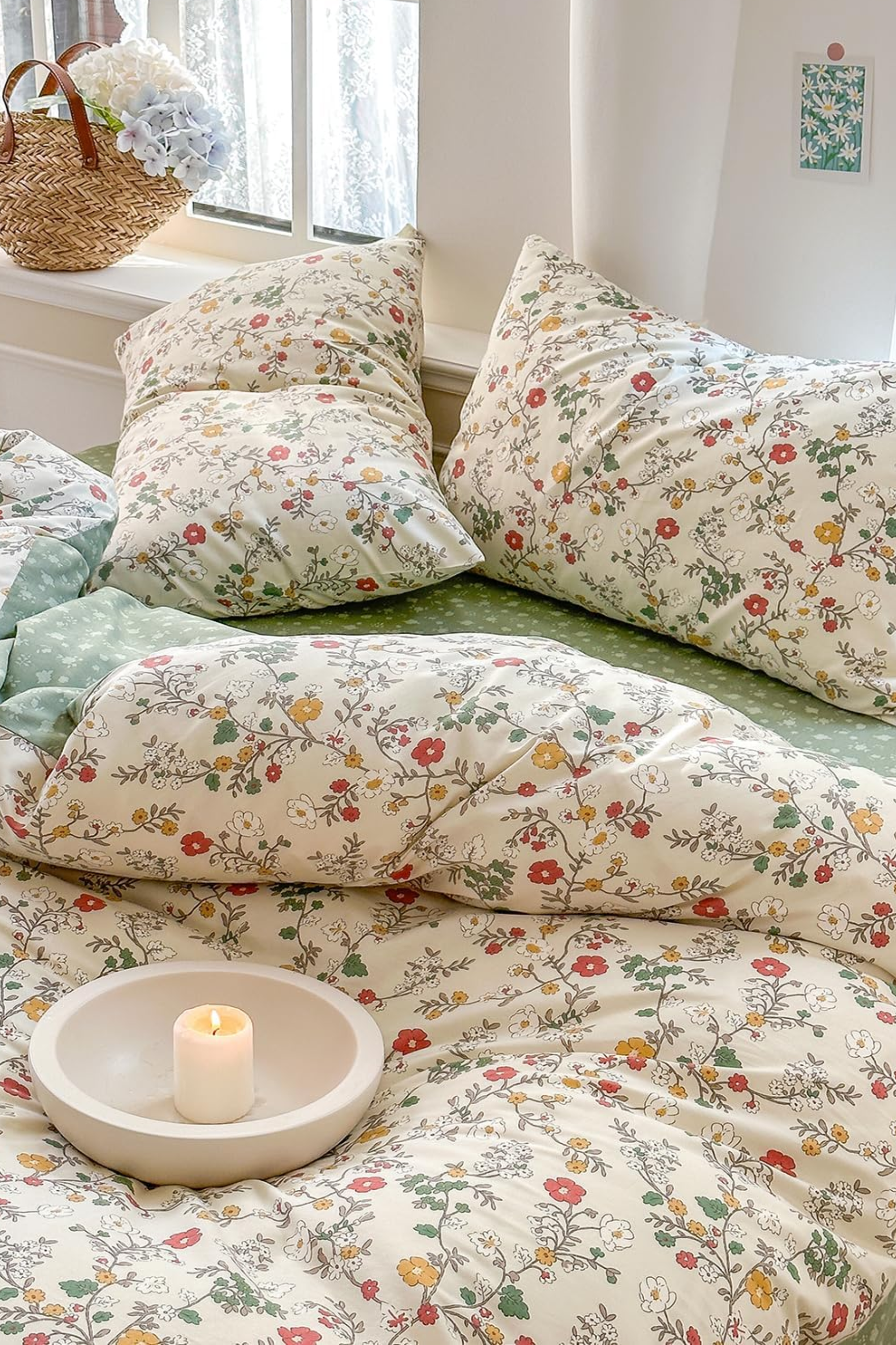 Une parure de lit fleurie et colorée, parfaite pour créer une chambre douce, lumineuse et pleine de fraîcheur.