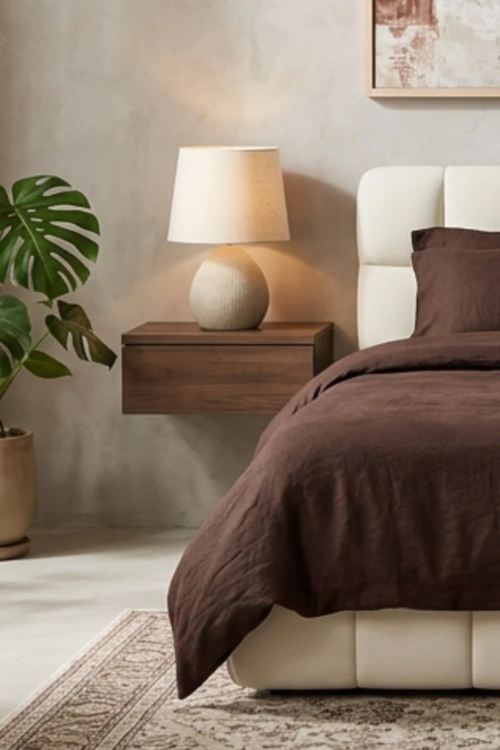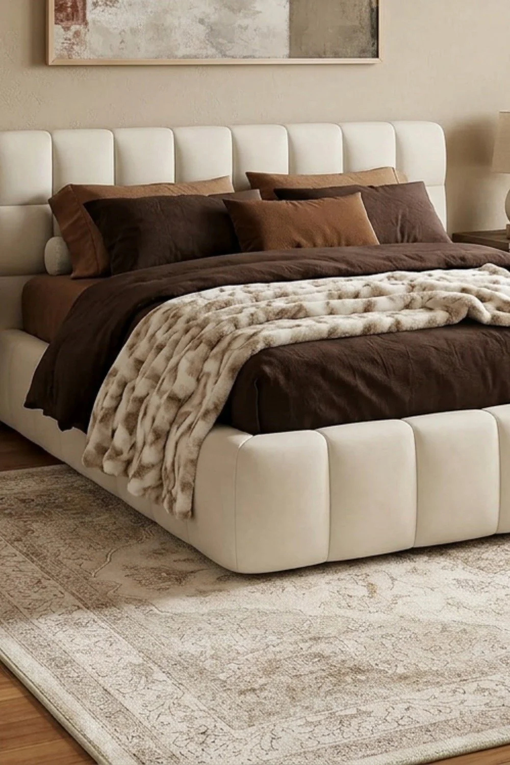 Une chambre cocooning dans des tons beige et marron, facile à recréer avec une sélection de produits accessibles sur Amazon.
