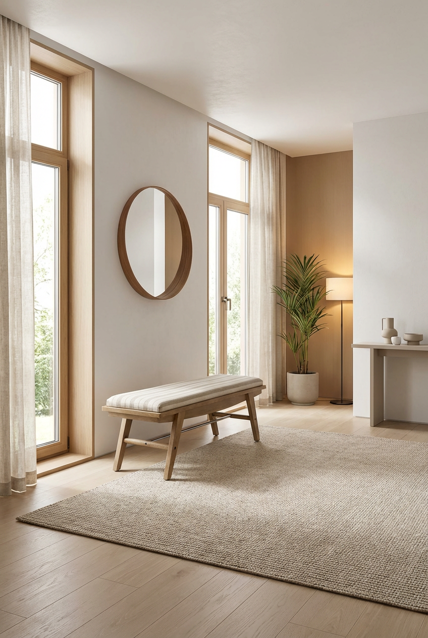 Ce type d’aménagement convient aussi bien à un petit couloir qu’à une entrée plus large. Il ne demande pas beaucoup de place, mais il change profondément la perception de l’espace. Même dans un appartement modeste, on peut recréer cette sensation de calme et de cohérence.